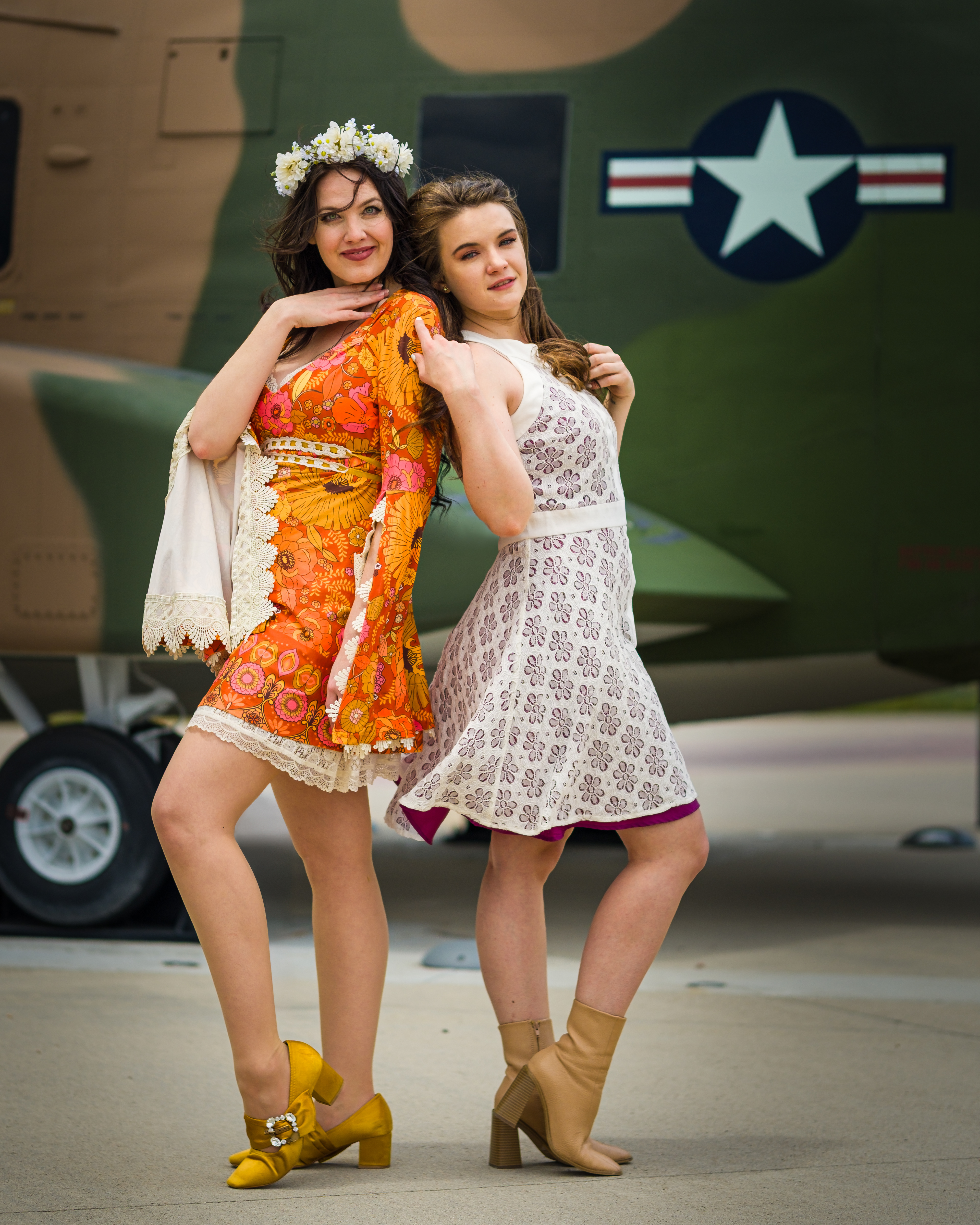 I created a 70s / Vietnam Era set in honor of the 50th anniversary of end of the war. The two models are instagram @_abigaileve_ (Abigail Hutchings) and @k.e_doublehockeysticks (Kellie Stern).